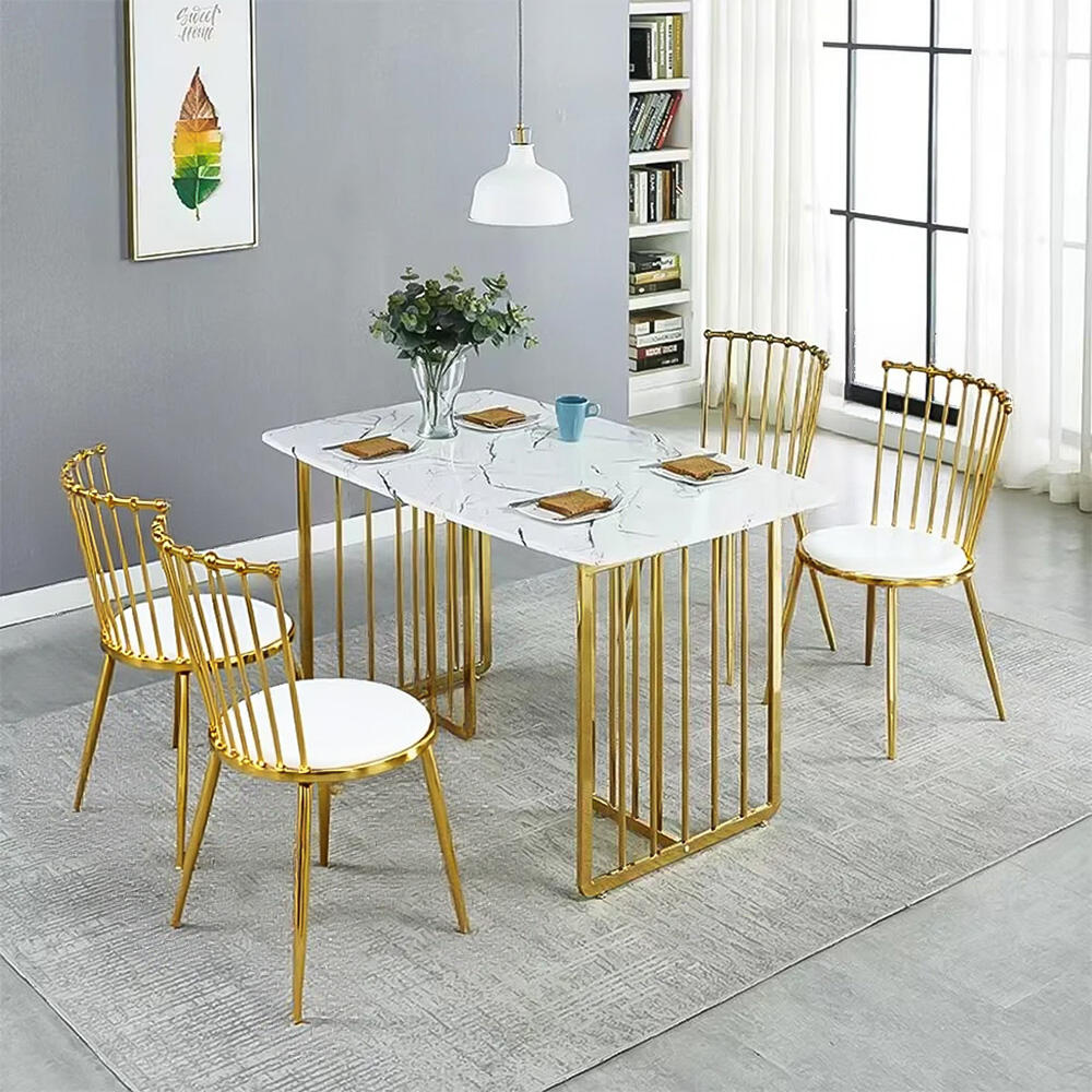 Moderne Goue Roesvrye Staal Eetkamerstoel Duurzaam Metaal Gestoffeerde Koning Troon vir Hotel Romansiese Woonkamer Party Geleentheid