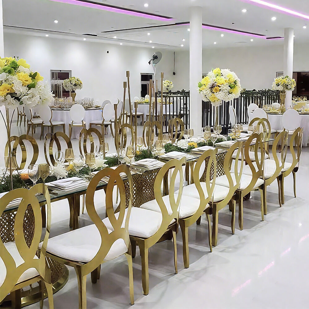 Mary White PU-læder bordservice- og bryllupsstole til arrangementer, fester og sale, stole i rustfrit stål til hotel