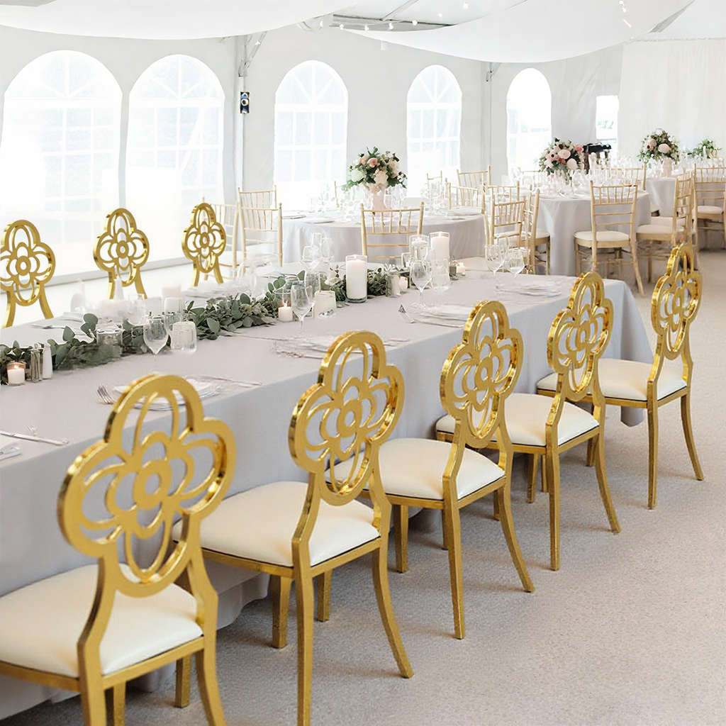 Kreative vergoldete Edelstahl-Esszimmerstühle mit weichem Lederbezug, ideal für künstlerische Zwecke, Hochzeiten, Wohnzimmer, Küche und Outdoor-Nutzung, direkter Werksverkauf