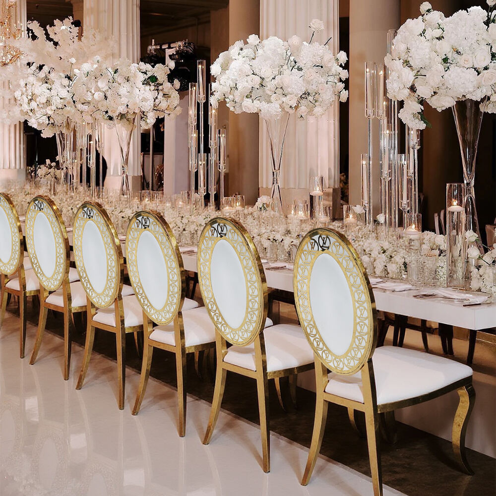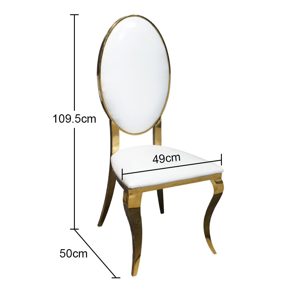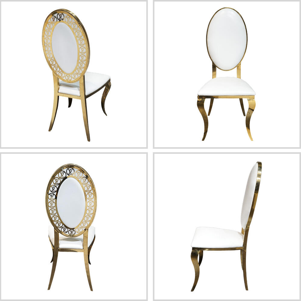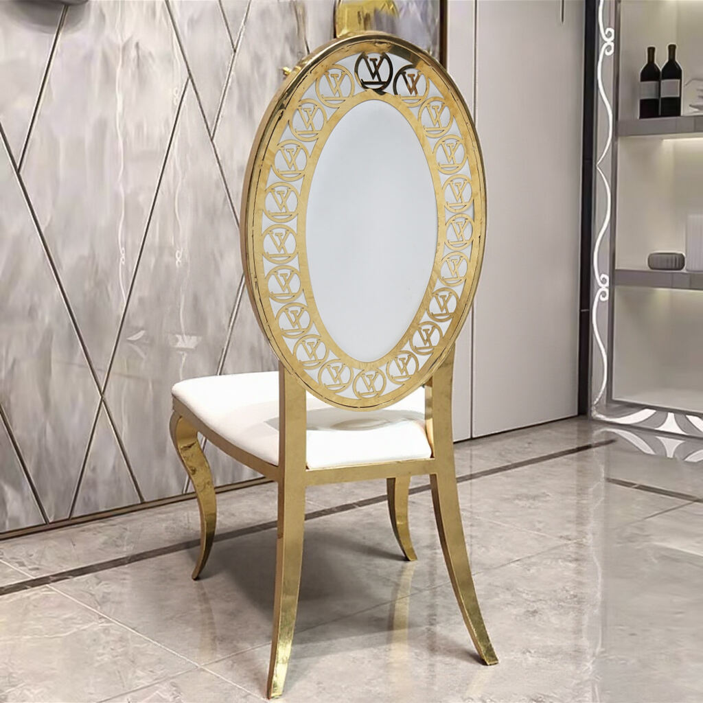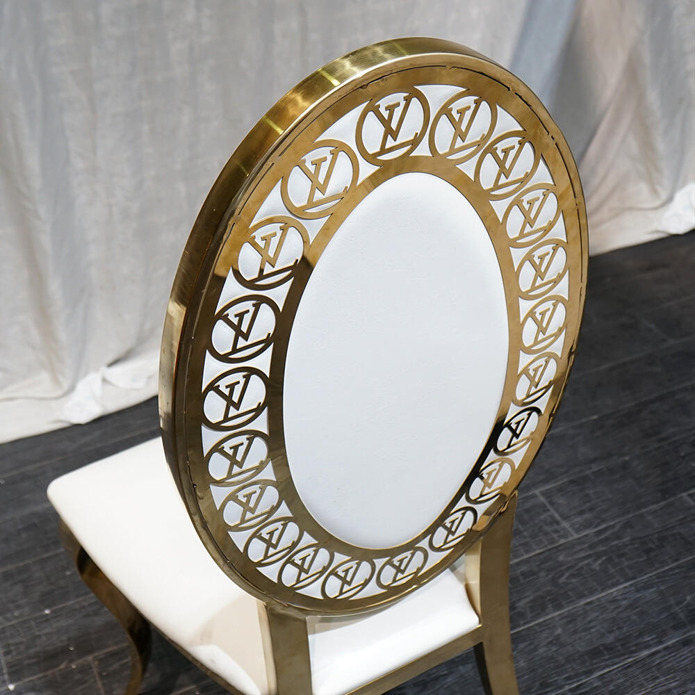 صندلی با پشتی بلند استیل ضدزنگ طلایی سفید روشن لوکس برای هتل‌ها، رستوران‌ها، مبلمان بادوام مراسم و عروسی