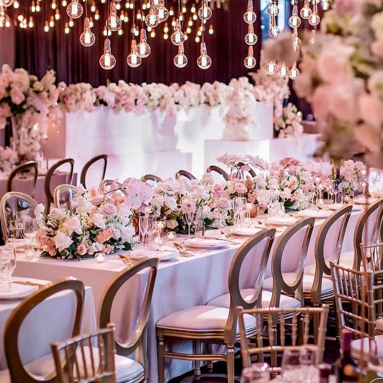 مبلمان سبک تخته‌وار، صندلی‌های چوبی باغ و ولیم عروسی با پشتی شفاف آکریلیک گرد