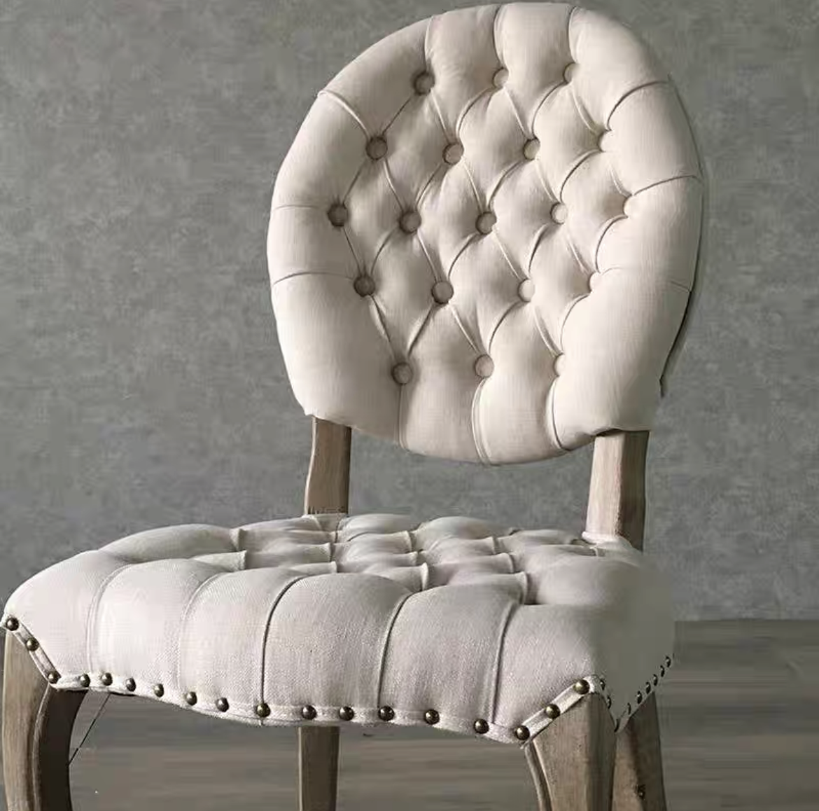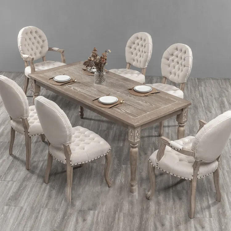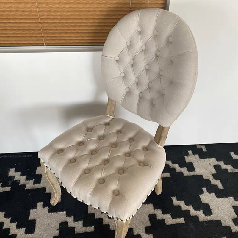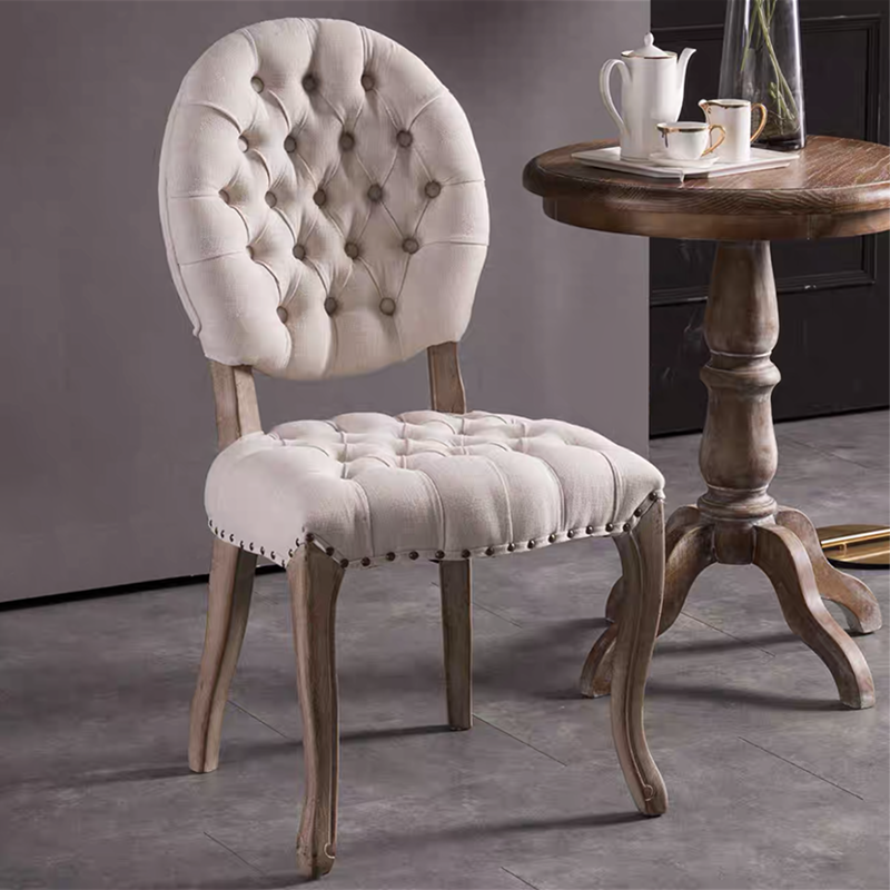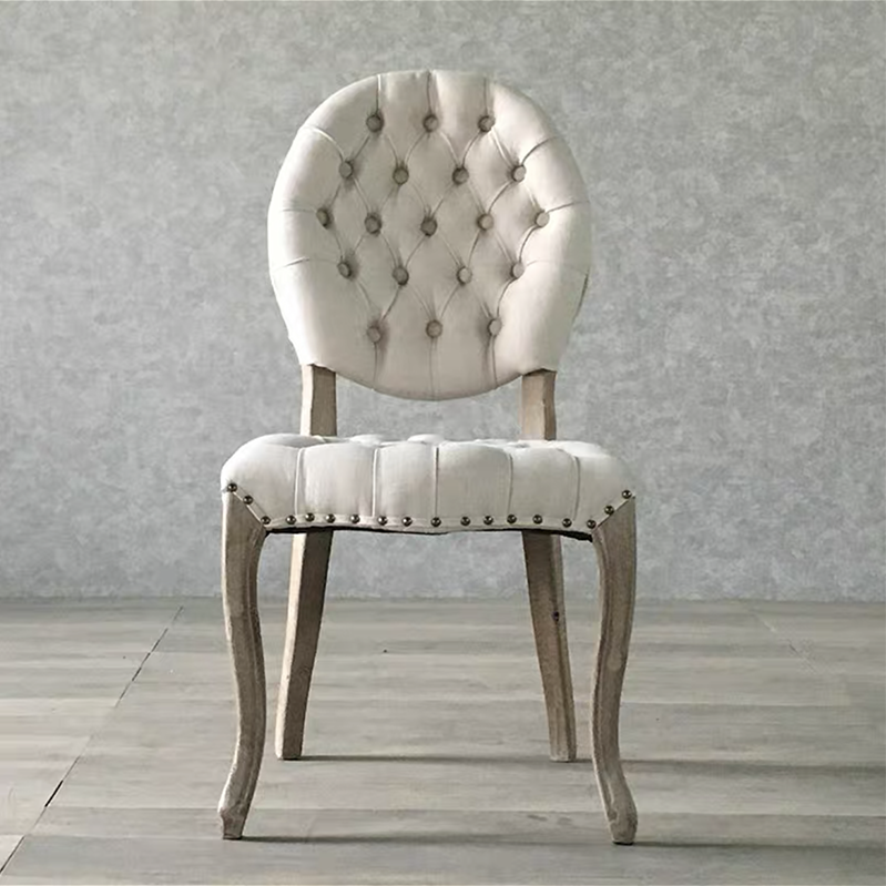 French Style Button Back Solid Wood Cafe Restaurant Chair Upholstery Vintage Wooden Classic Dining Chair for Events
