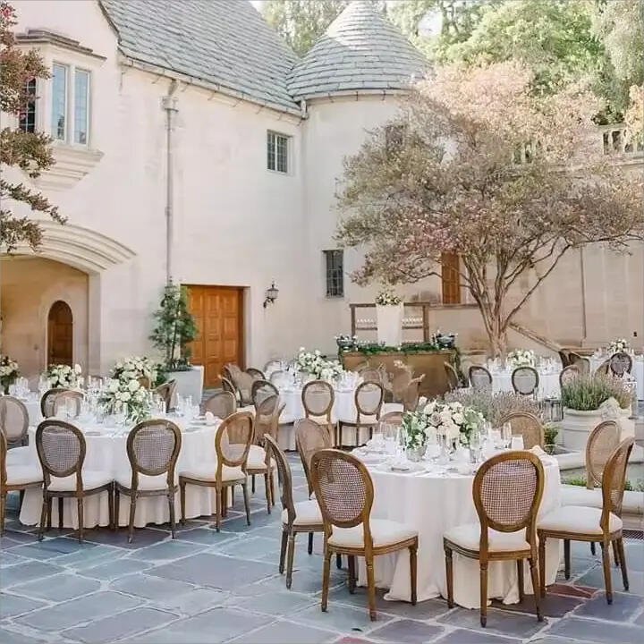 Kursi Makan Gaya Prancis Desain Vintage dengan Bingkai Kayu Solid dan Punggung Bundar untuk Restoran dan Ruang Makan Louis