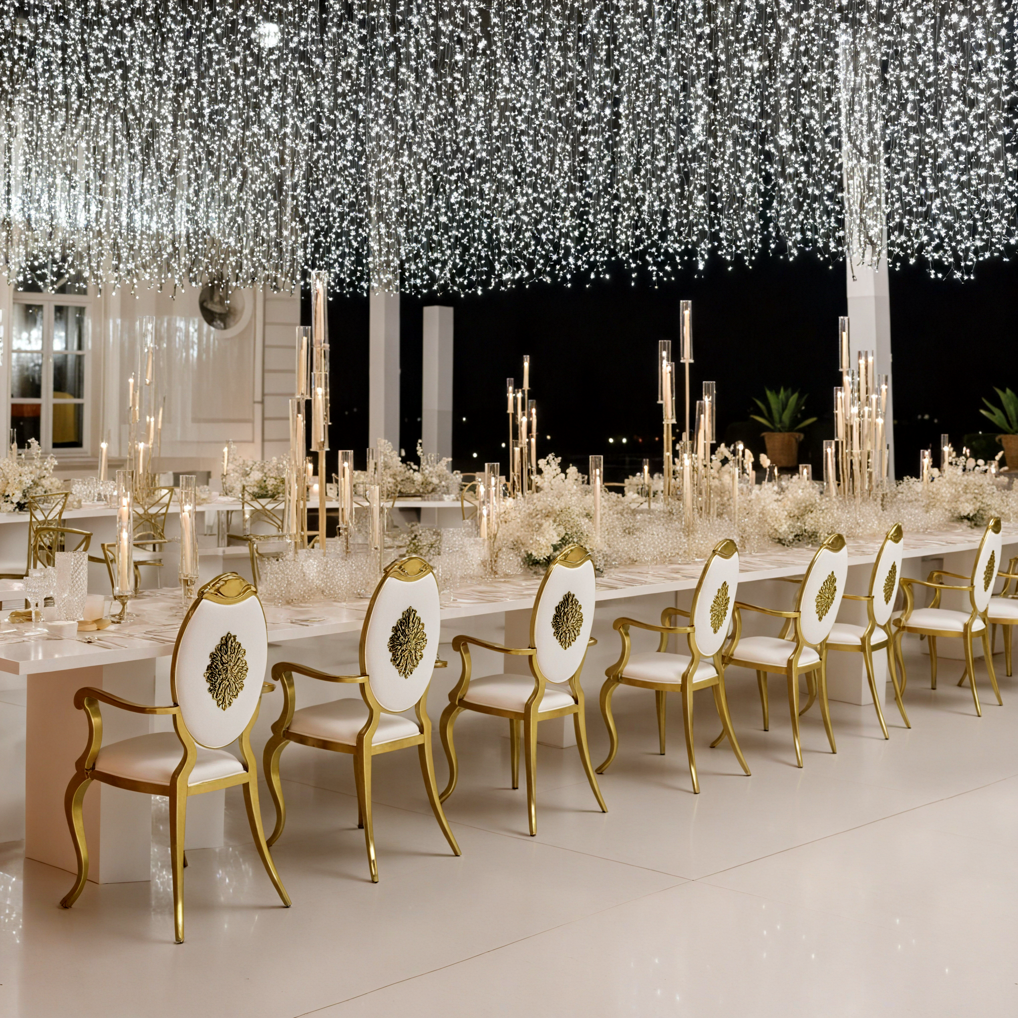 כיסא ערב יוקרתי מודרני זהב לבן נירוסטה למלונות חתונות מסעדות אירועים סלון היכל