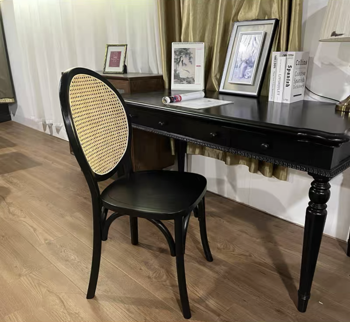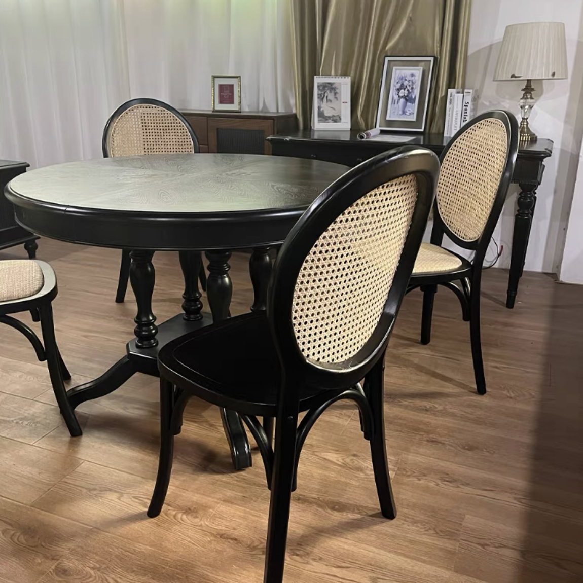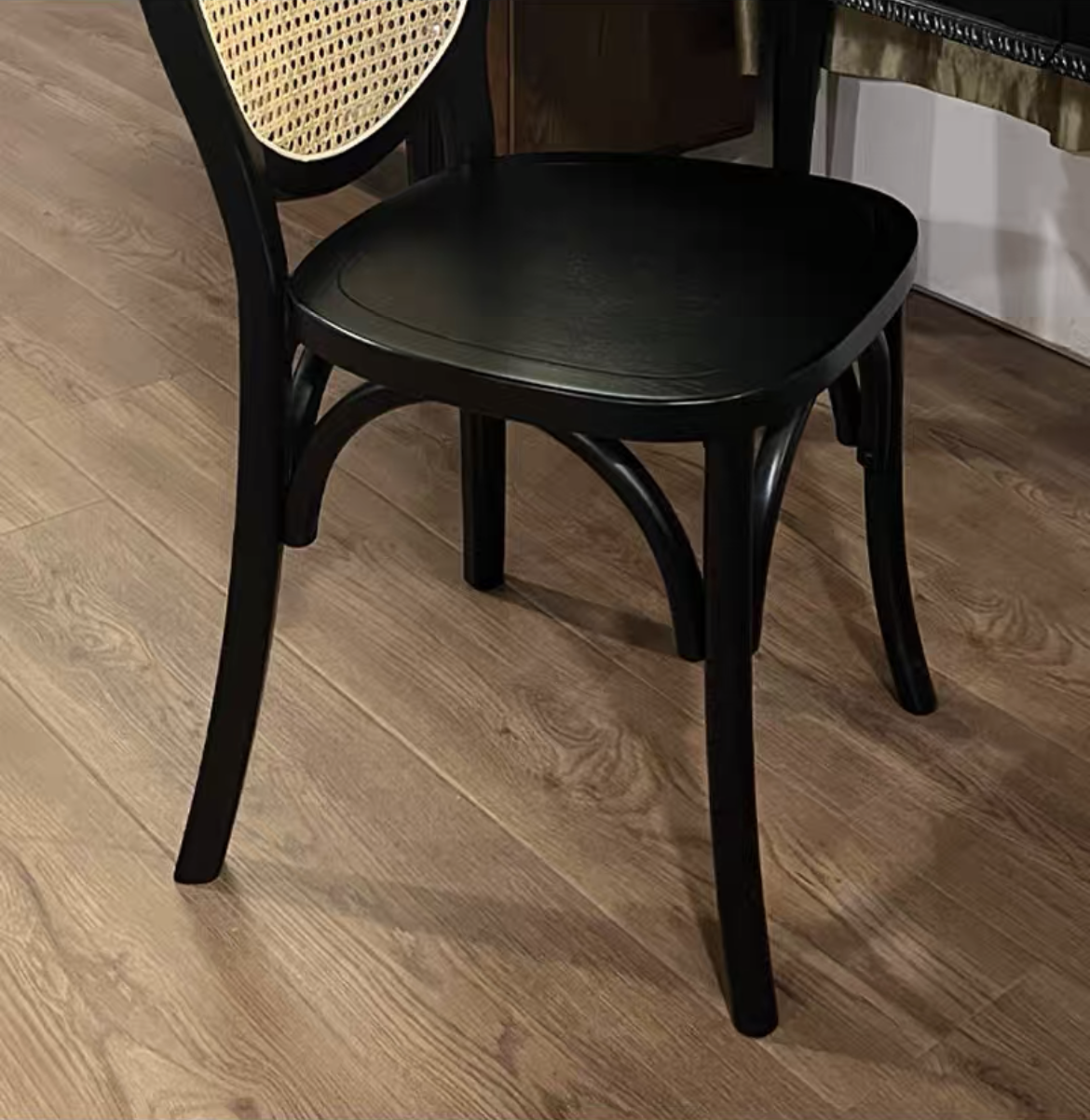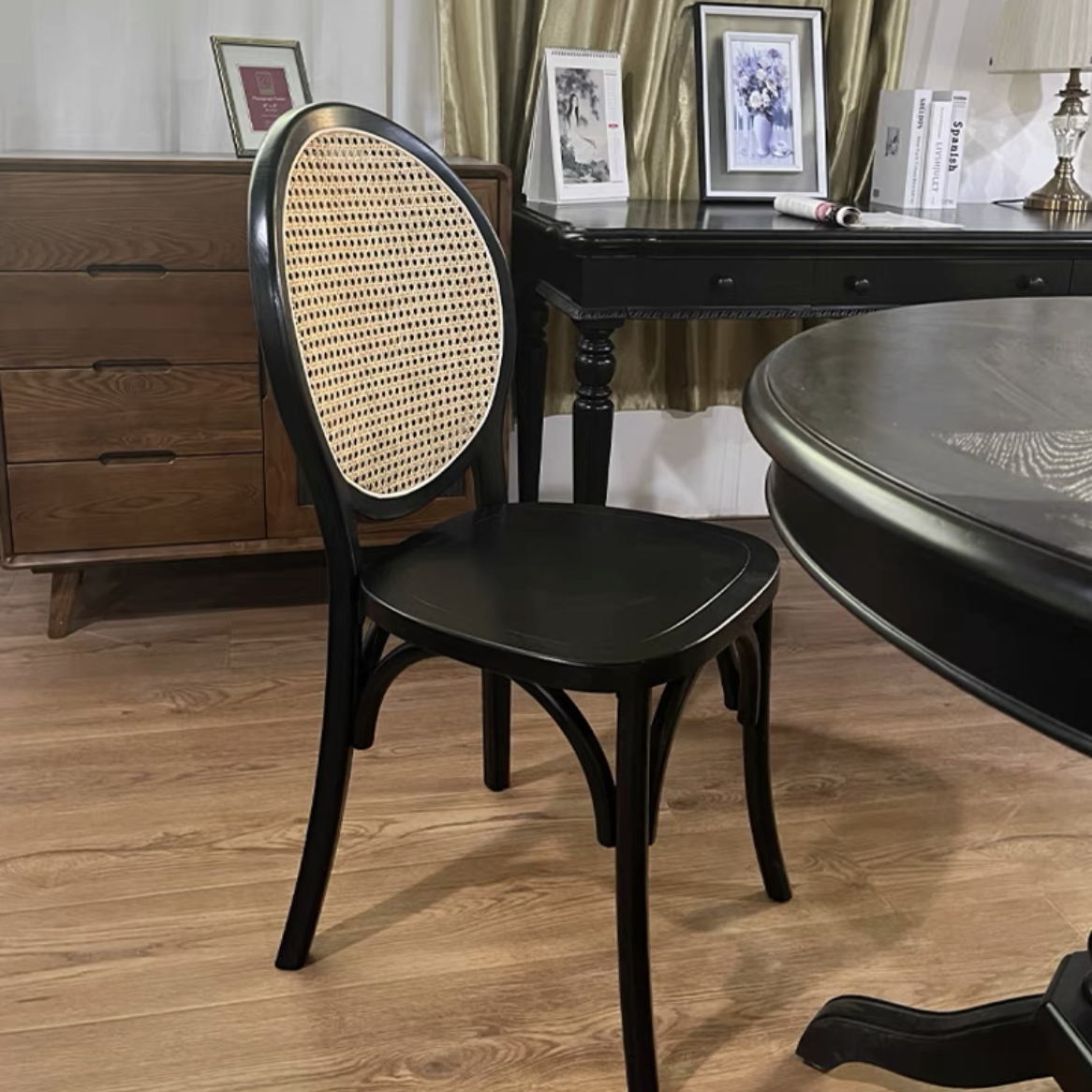 Modern Antiqued Solid Black Rattan Back Dining Chair for Hotels Bars Events Weddings Outdoor Venues Solid Wood Style