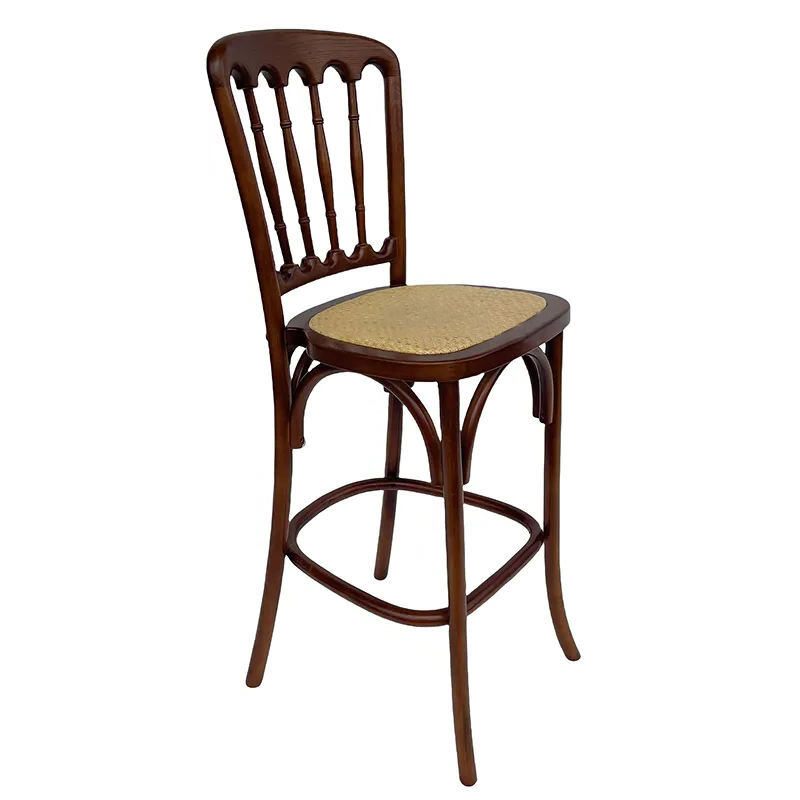 Vintage Solid Wood Bar Stool Antique-Style High-Legged Stackable Chair for Home Restaurant Hotel and Wedding Parties