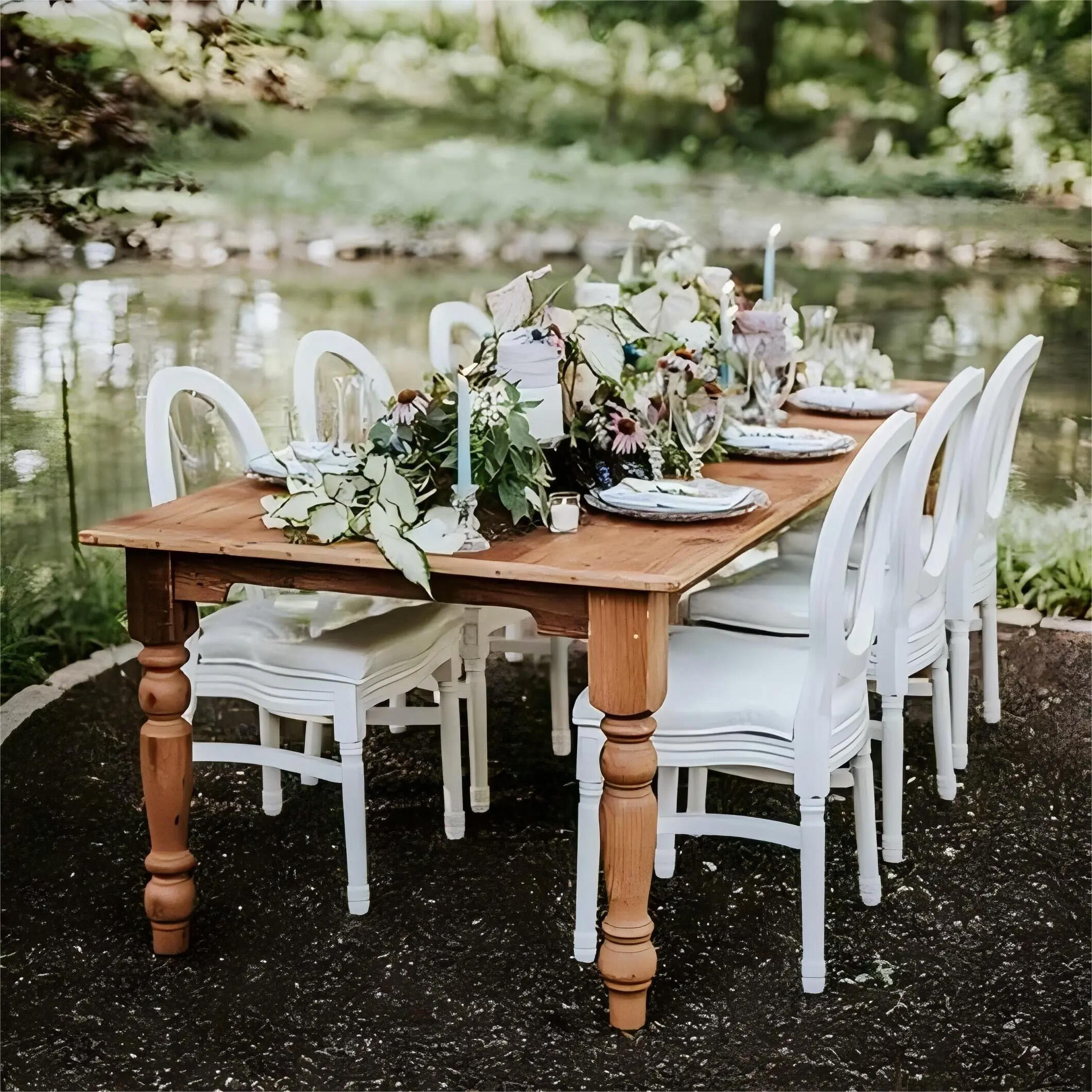 Modern Oak Wooden Wedding Chairs with Transparent Backrests Upholstered Seat Cushions for Outdoor Dining Living Rooms Hotels Etc