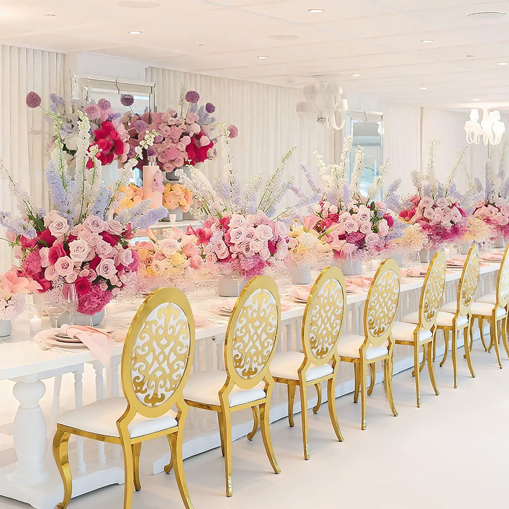 Modern Stainless Steel and Gold Metal Dining Chair Durable Furniture for Outdoor Party Bar Hotels Weddings Events