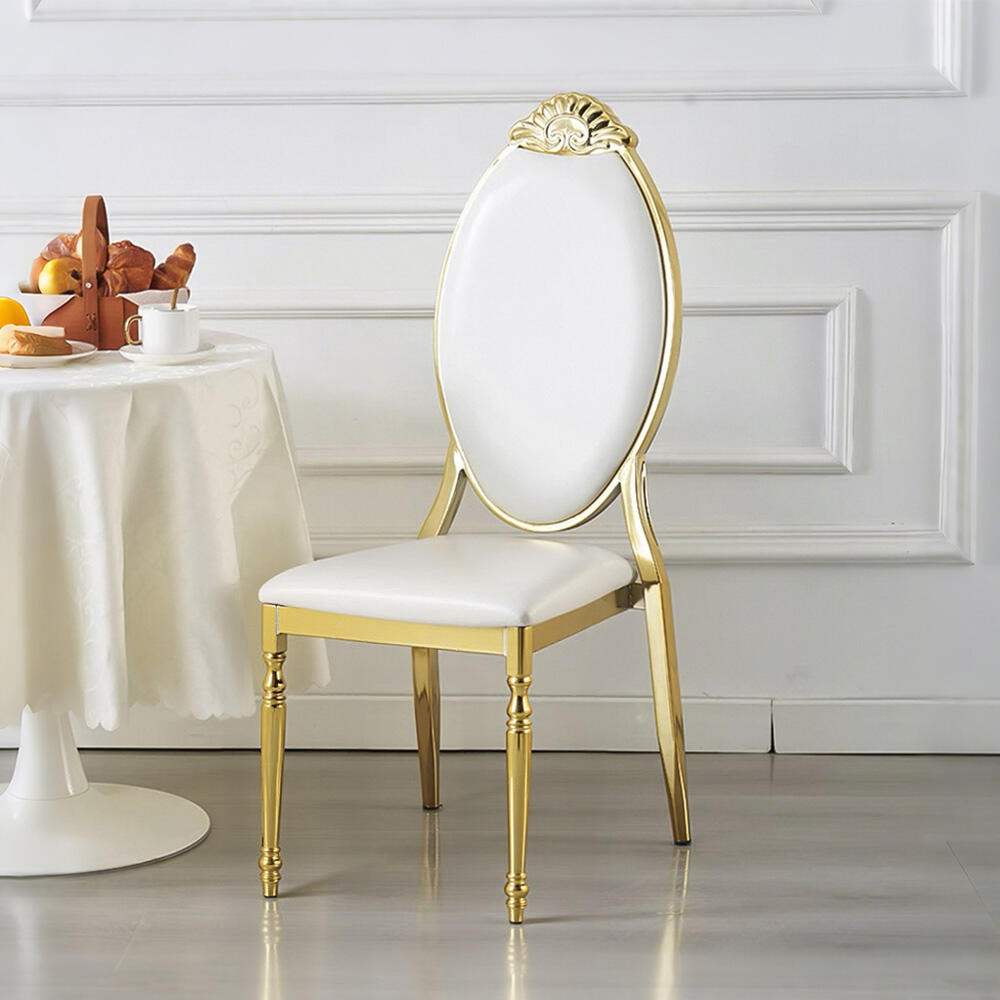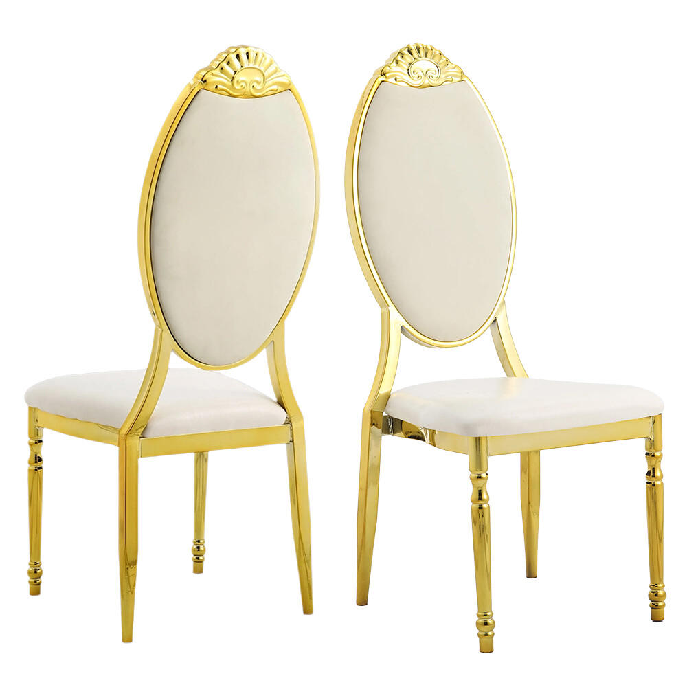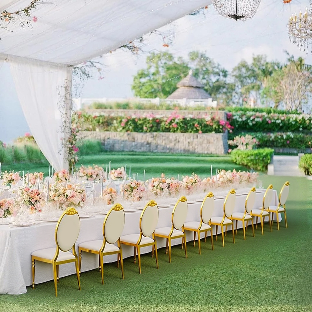 Luxe Ovale Rug Steunkussen Goudkleurige Stapelbare Hotelbankettenstoelen voor Bruiloft Evenement