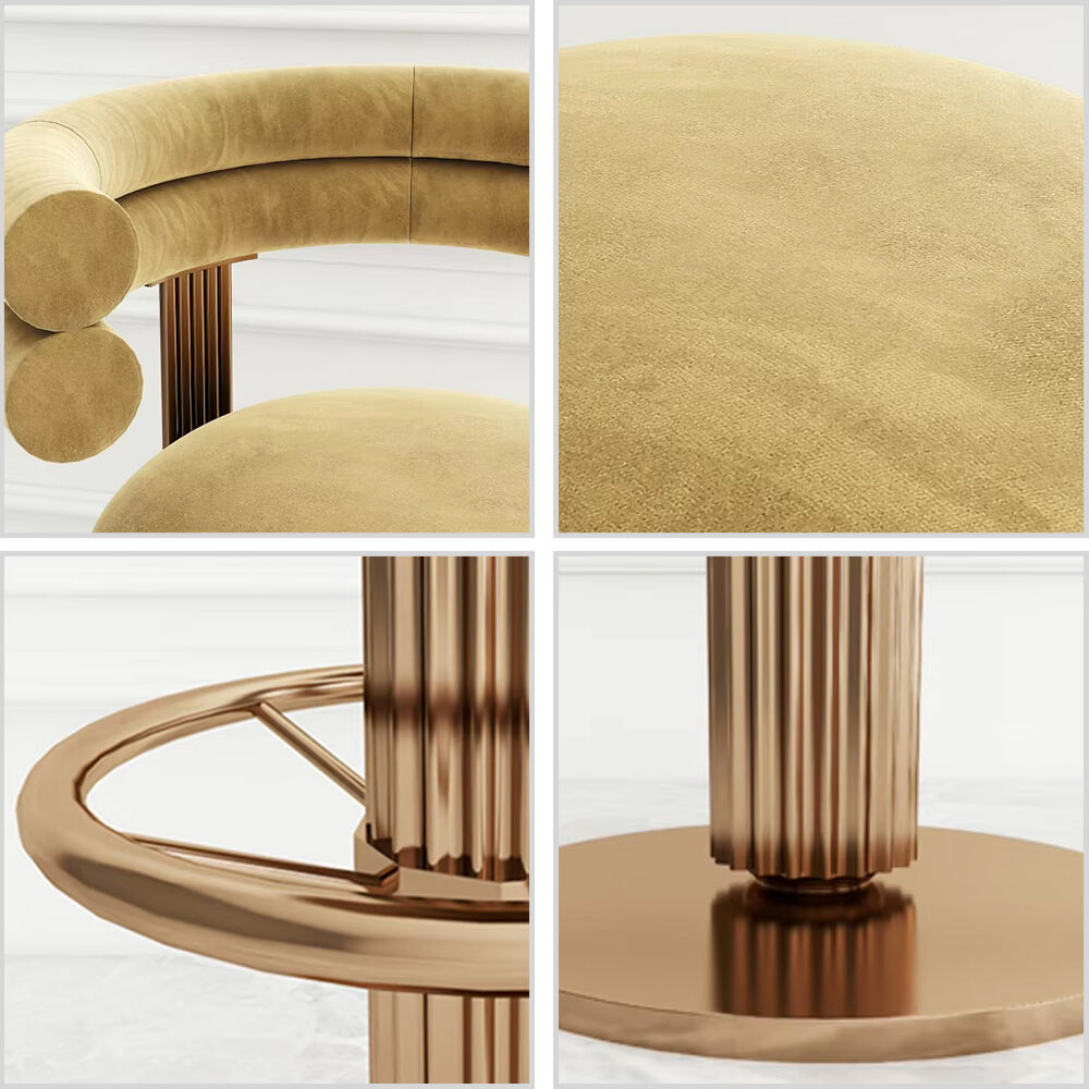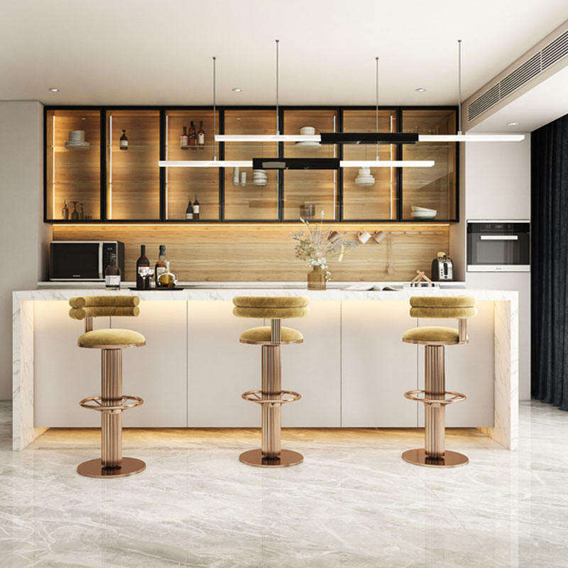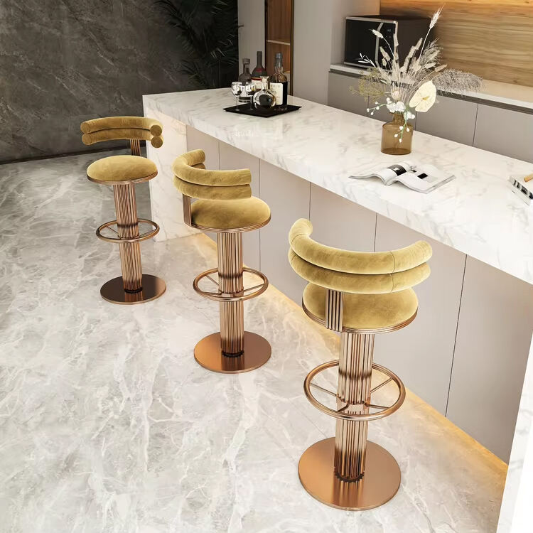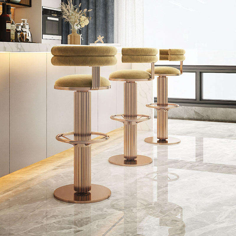 nordic luxury bar chair stainless steel rotating high cafe stool for home front desk living room with leather finish-0