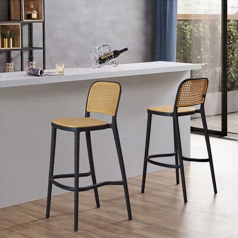 Scandinavian Design Plastic Rattan Bar Chair Versatile Furniture for Restaurant Living Room Gym Coffee Workshop Home Bar