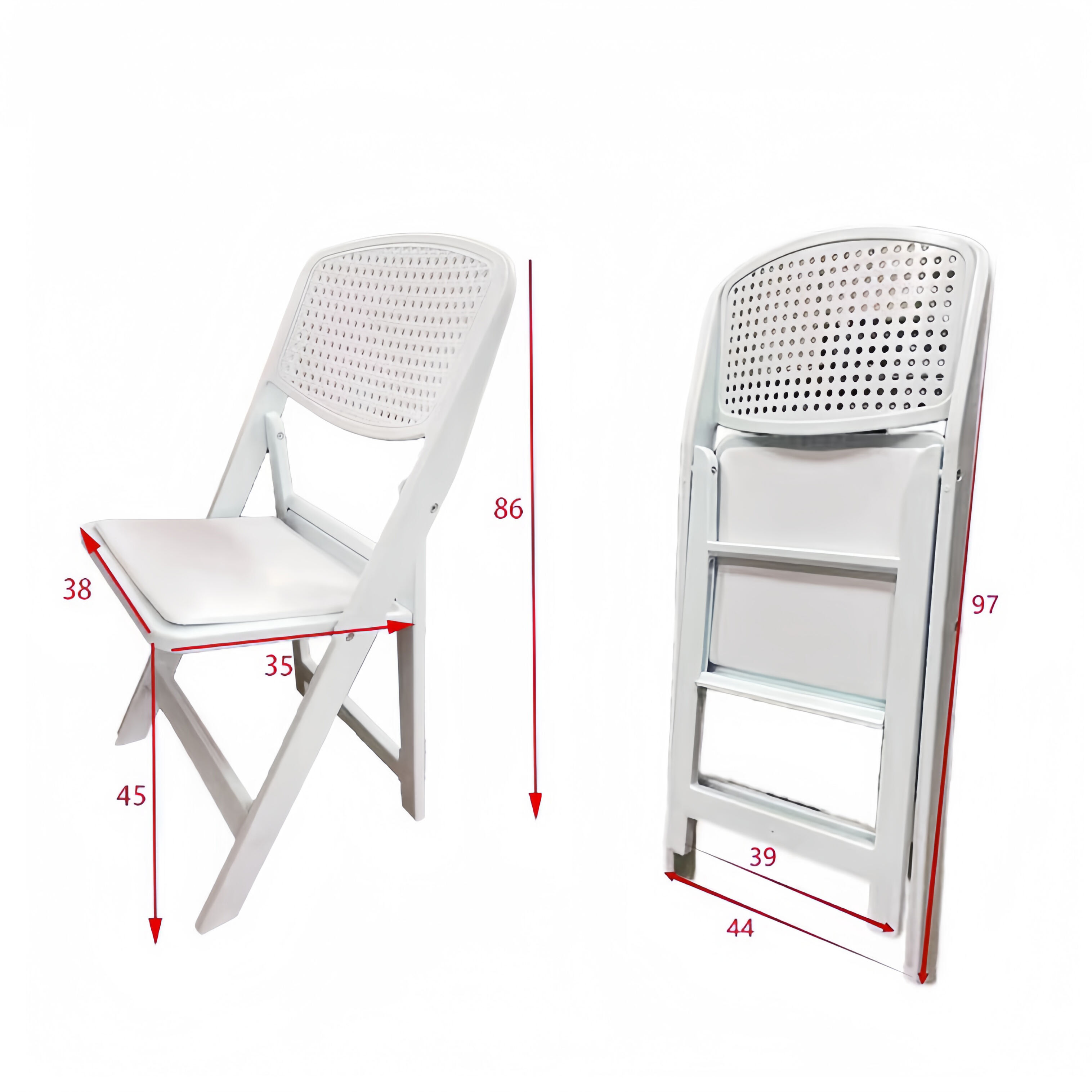4. Enkel Montage och Växlingsbar: Stolen är enkel att montera, och dess växlingsbara design gör den till en praktisk transportlösning för flyttning och lagring. Den är kompakt, lättviktig och kan staplas för effektiv lagring och minimala utrycksbehov.