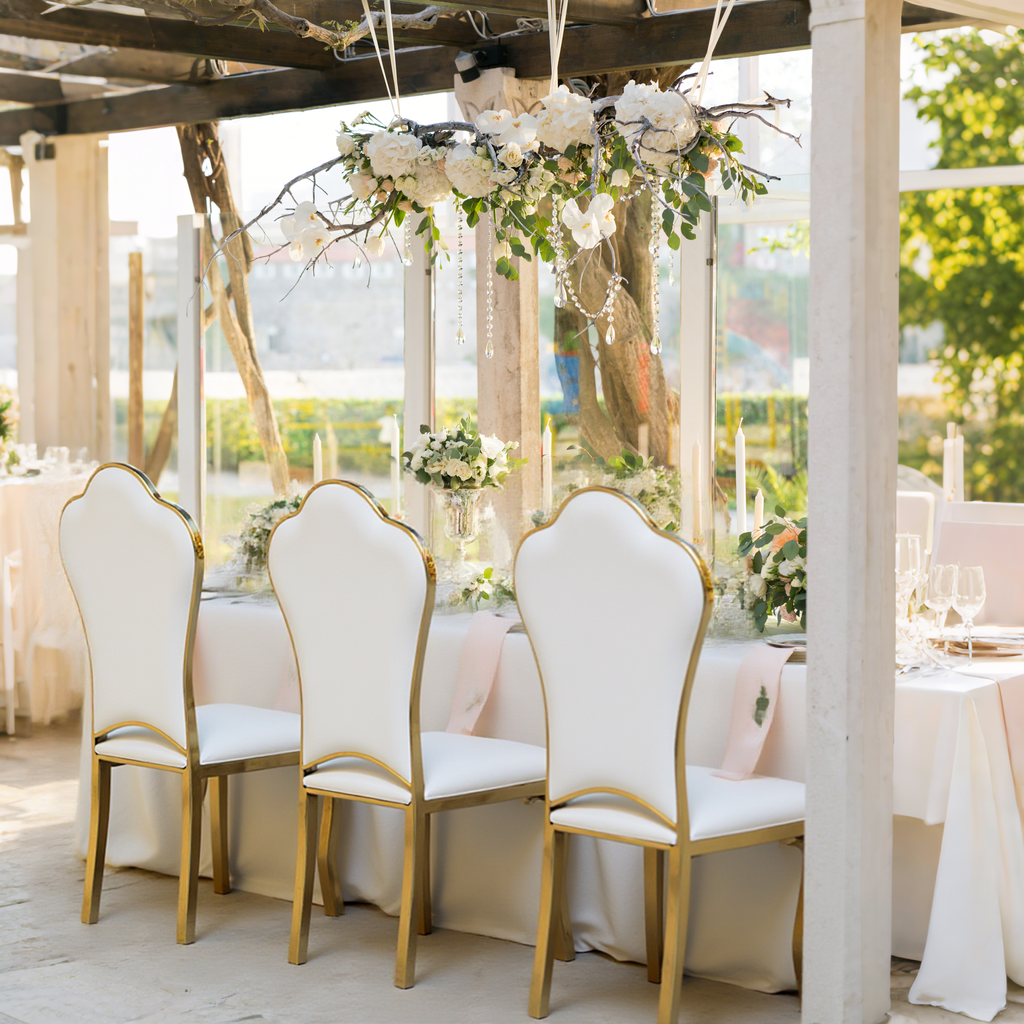 Kiti cha Juu cha Chuma cha Stainless Kilichopasuka Kimepaka Kupya kwa Vituo vya Hoteli, Makahawa, Harusi, Tafriji na Nyumba za Malazi