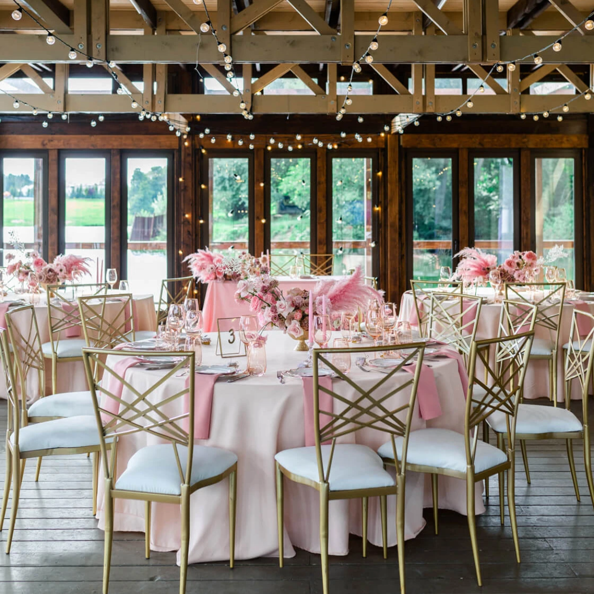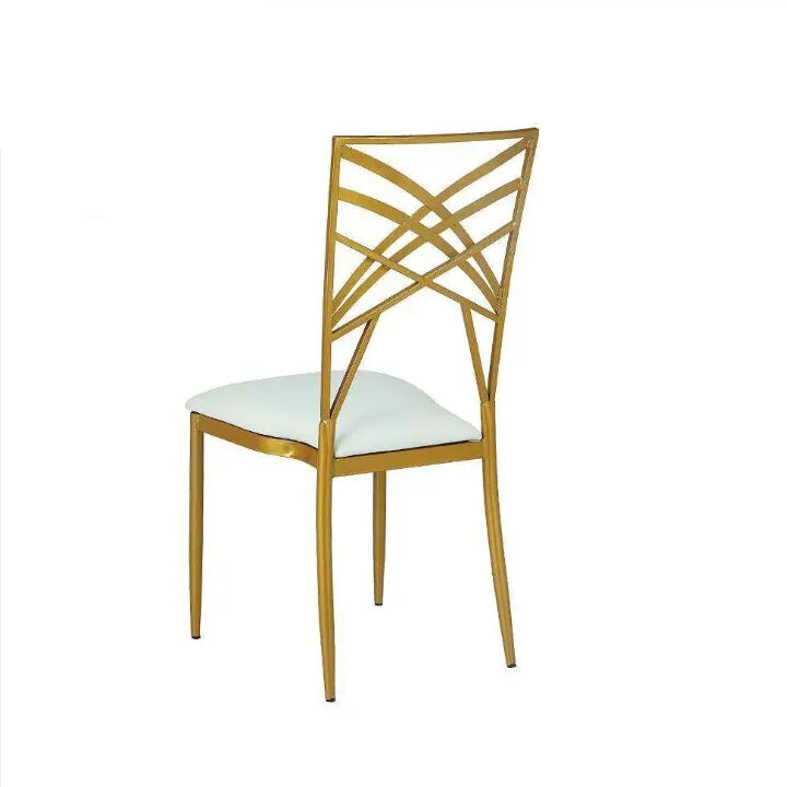 மொத்த விற்பனையில் சிறந்து விற்பனையாகும் நவீன நிகழ்வு சாமான், பொன்-வெள்ளை ஸ்டீல் டிஃபனி நாற்காலிகள், இருக்கை குஷனுடன் கூடிய திருமண நாற்காலிகள்