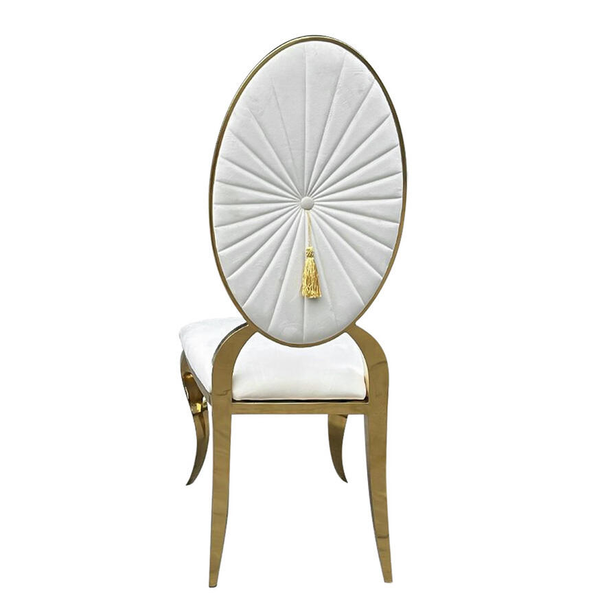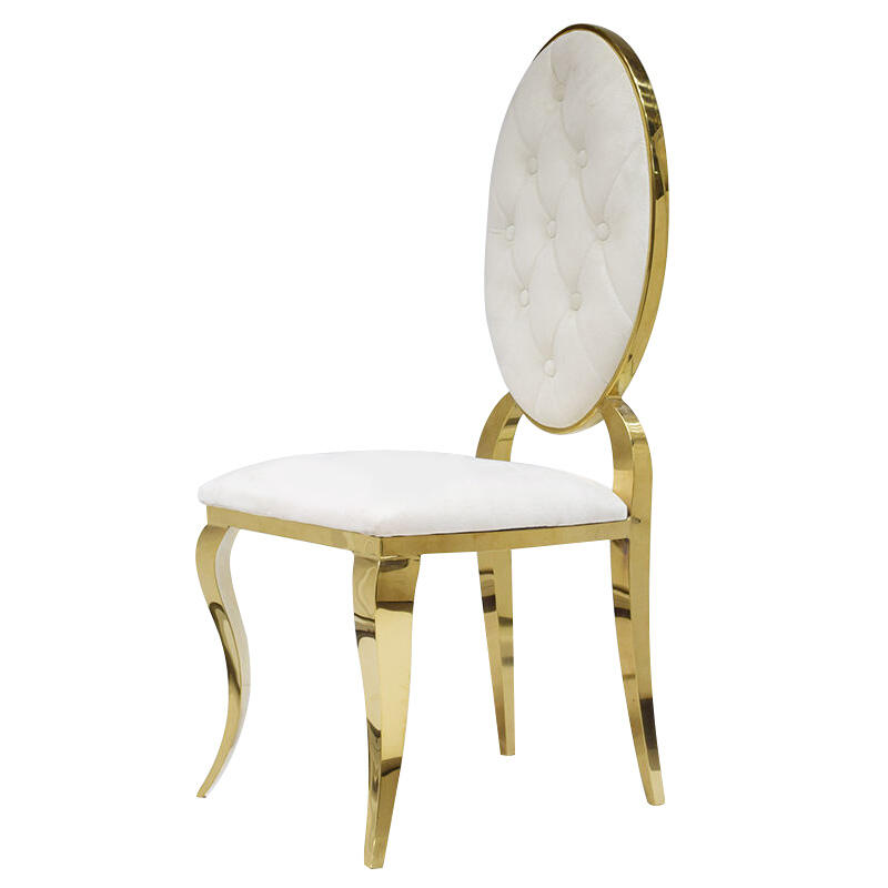 ఆధునిక కనీస స్టెయిన్‌లెస్ స్టీల్ డైనింగ్ కుర్చీలు, మన్నికైన మెటల్ సీట్లు, హోటల్ లివింగ్ రూమ్ ఫర్నిచర్ కోసం ఫ్యాషనబుల్ ఫాబ్రిక్ వెనుక భాగం