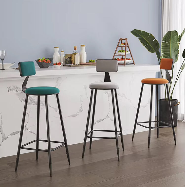 เก้าอี้บาร์สูงหนังพนักพิงหลัง ดีไซน์หรูหรา พร้อมโครงโลหะ สำหรับใช้ในบ้าน ห้องอาหาร ห้องนั่งเล่น ร้านอาหาร ร้านกาแฟ