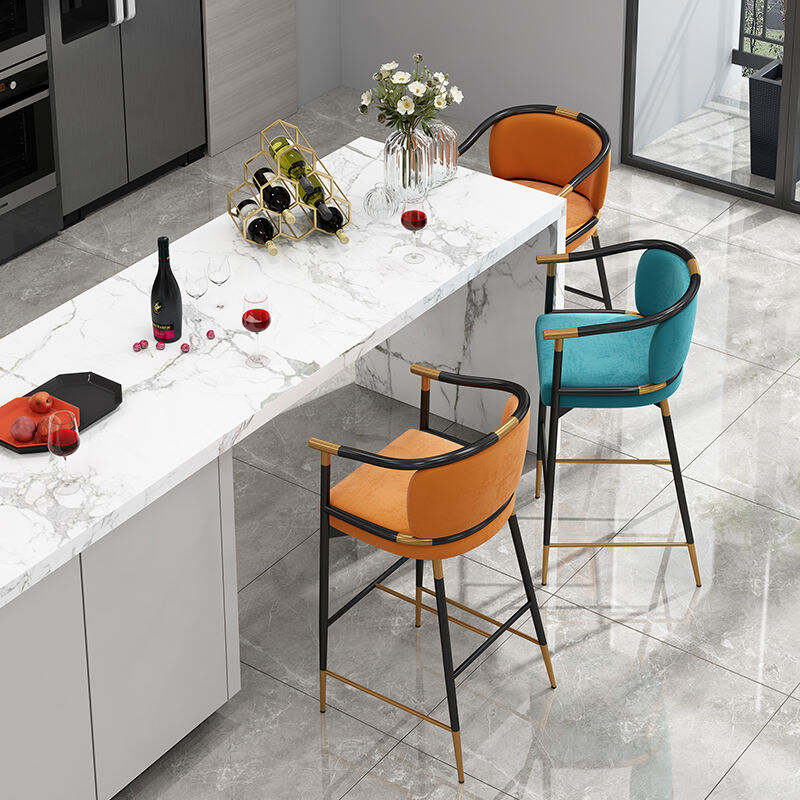 เก้าอี้บาร์จีนเรียบง่ายทันสมัย ดีไซน์หรูหราสำหรับครัวเรือน พนักพิงหลังกันน้ำ เบาะหนังเทียมชนิดพลาสติกไม้ เก้าอี้สูง ใช้ในครัวและห้องอาหาร