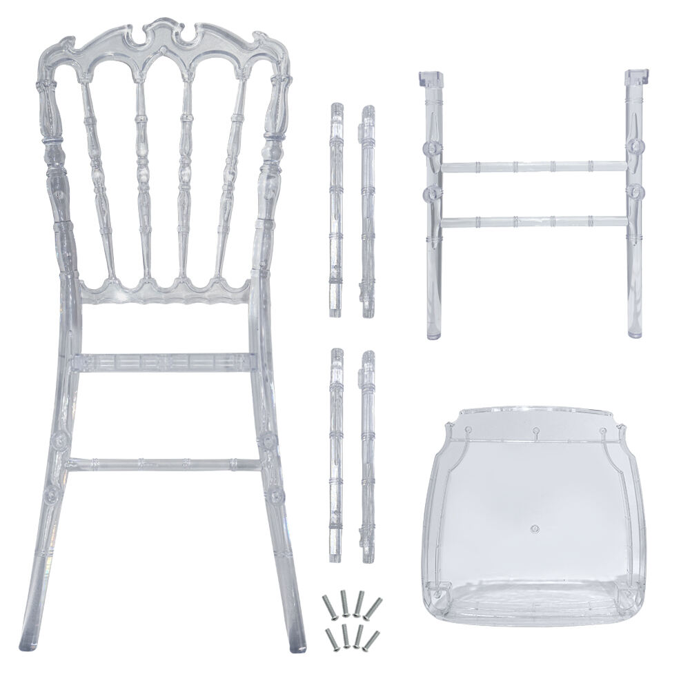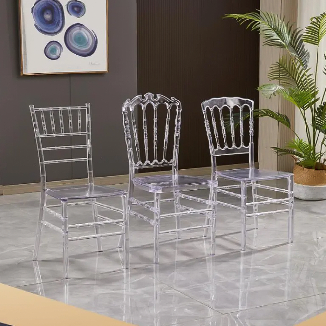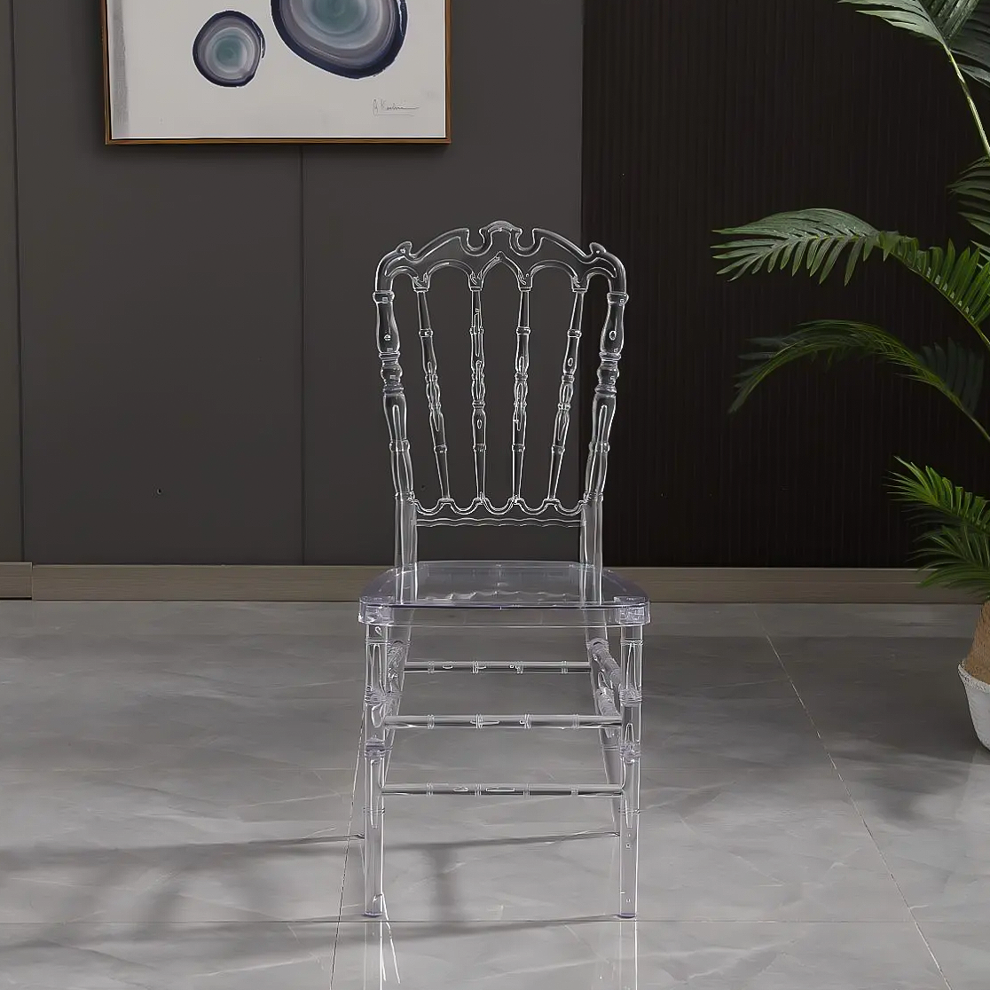 Ginawa sa mataas na kalidad na acrylic resin, matatag at mahabang panahon ang upuan na ito. Ang malinaw na anyo nito ay napakaganda, lumilikha ng malinis at modernong hitsura. Ang unikong disenyo nito ay nagpapahintulot na maghalo nang malinaw sa anumang dekorasyon ng kaganapan, gumagawa ito ng isang maaaring gamitin sa lahat ng uri ng kaganapan.