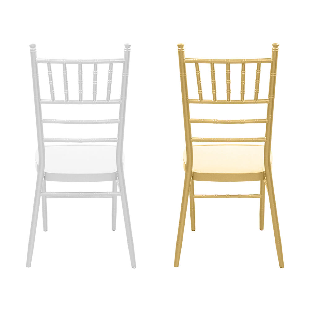 Ucuz Toplu Satış Tiffany Transparent Poliester Chiavari Sandalyesi Metal Yastık Düğünler Tören Otel için