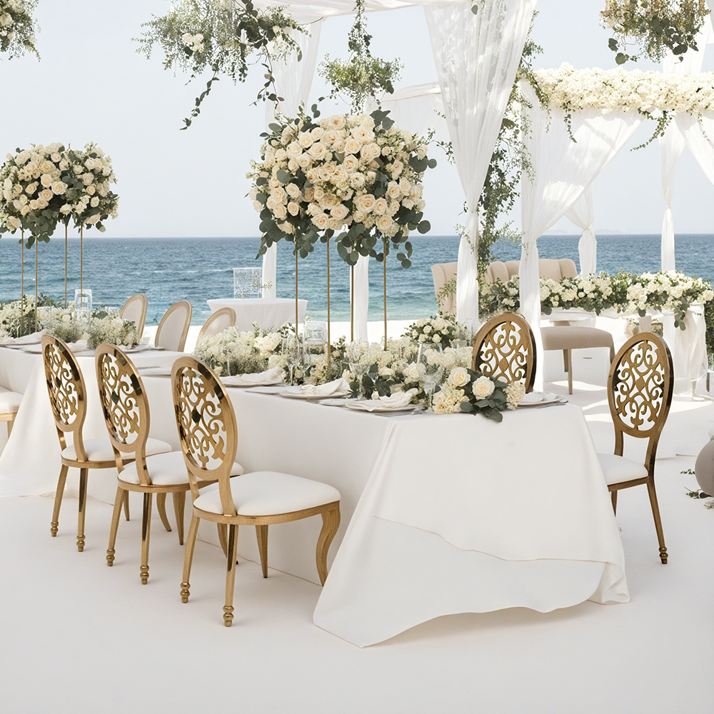 Ghế tiếp tân sang trọng bằng inox mạ vàng, ghế bar tiệc, khách sạn, nội thất kim loại hiện đại cho phòng ăn, phòng khách, ngoài trời