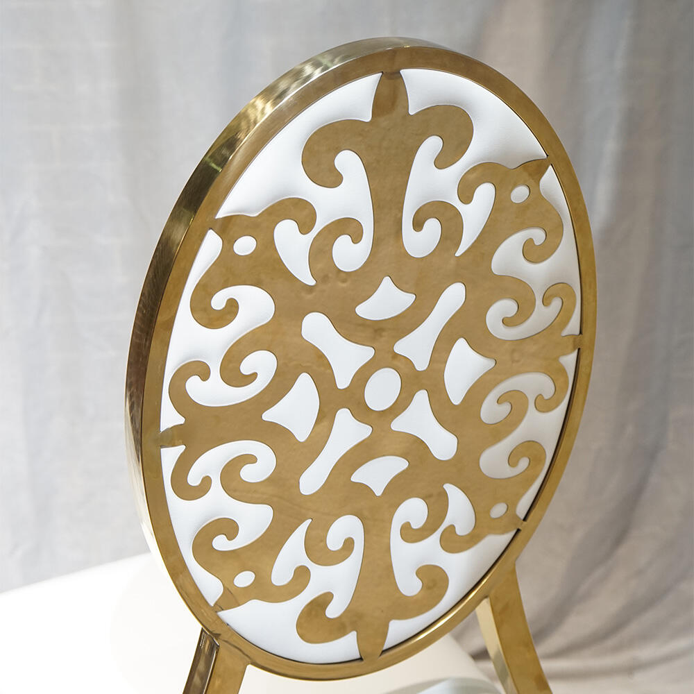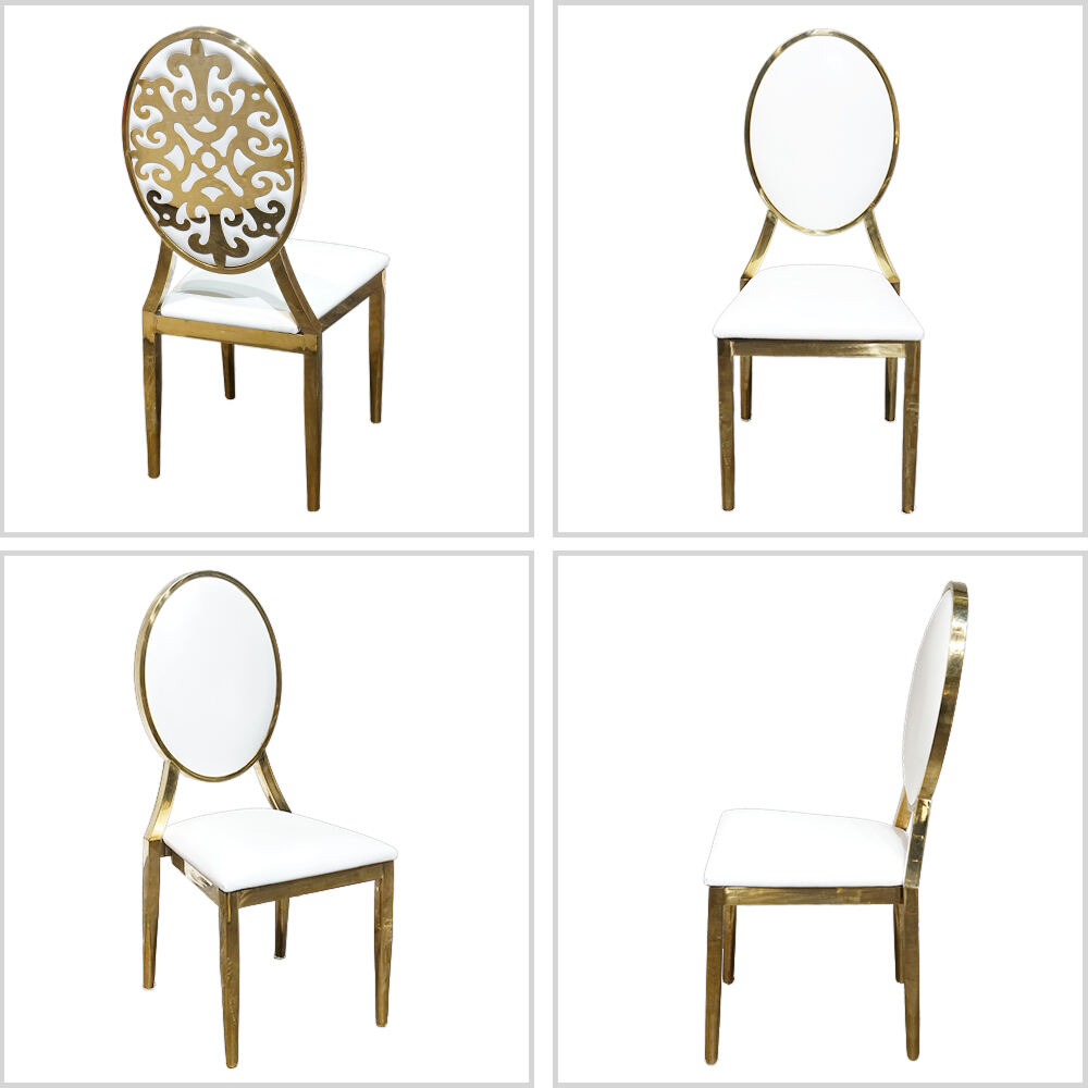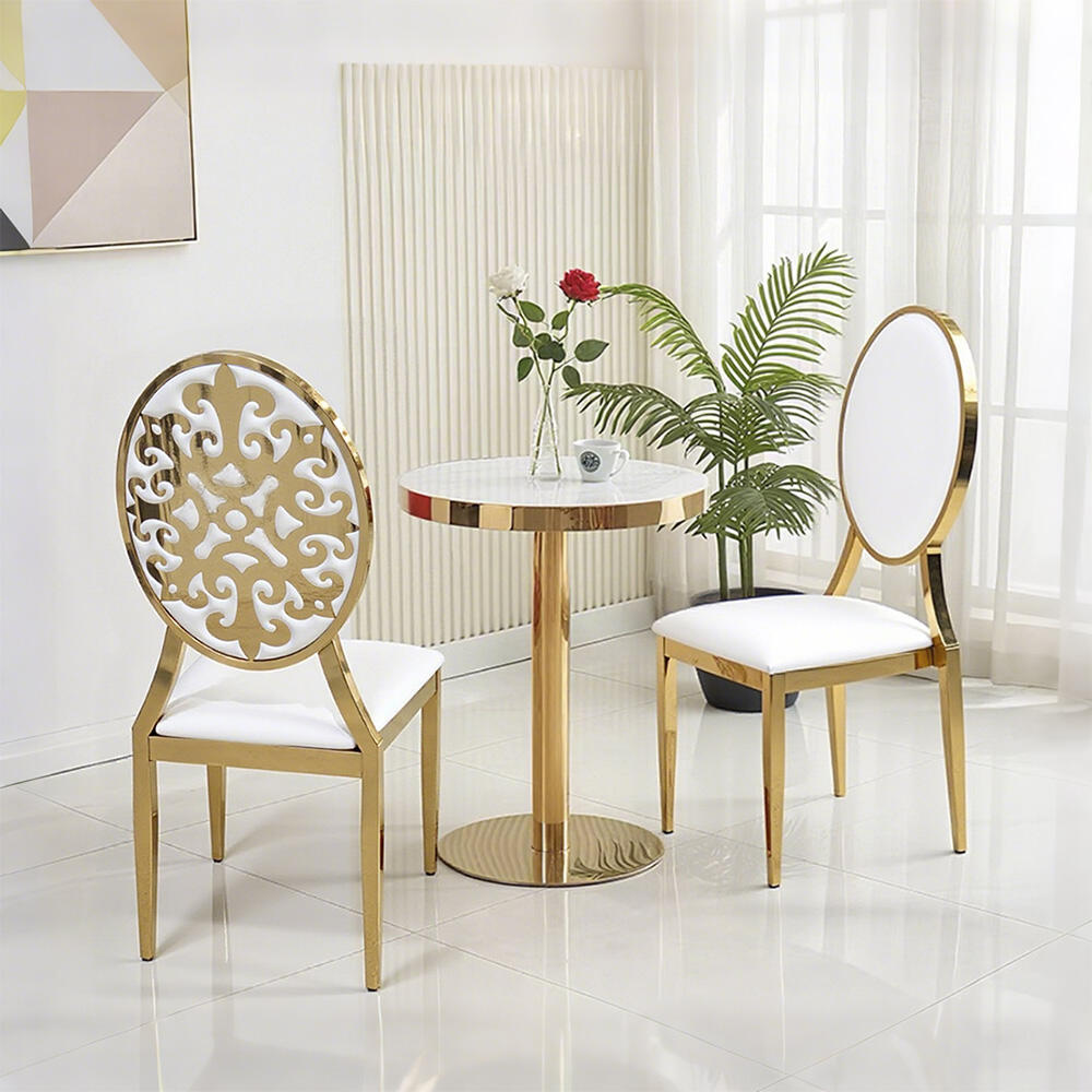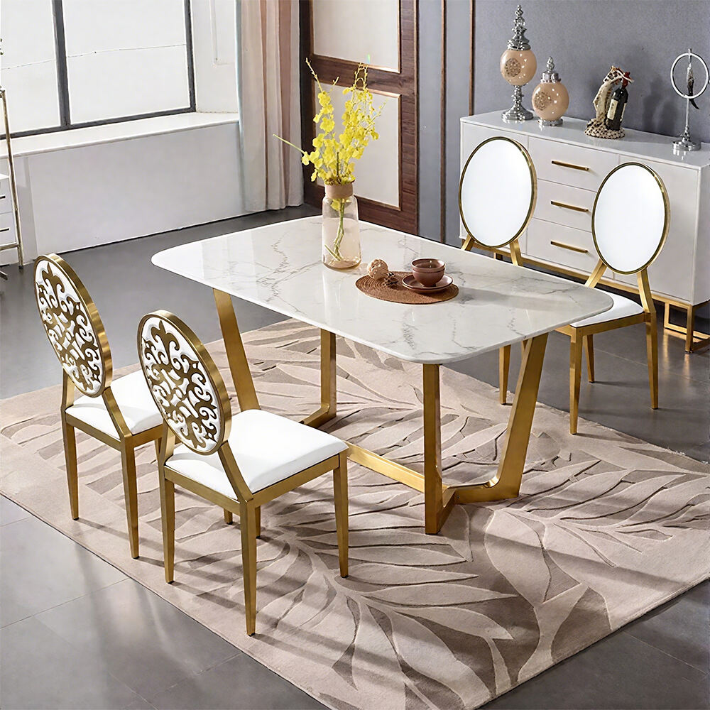Bộ Bàn Ăn Cao Cấp Hiện Đại Màu Vàng Trắng Bằng Thép Không Gỉ Cho Khách Sạn, Cưới Hỏi, Sự Kiện Ăn Uống, Nhà Hàng, Phòng Khách, Ghế Khách Sạn
